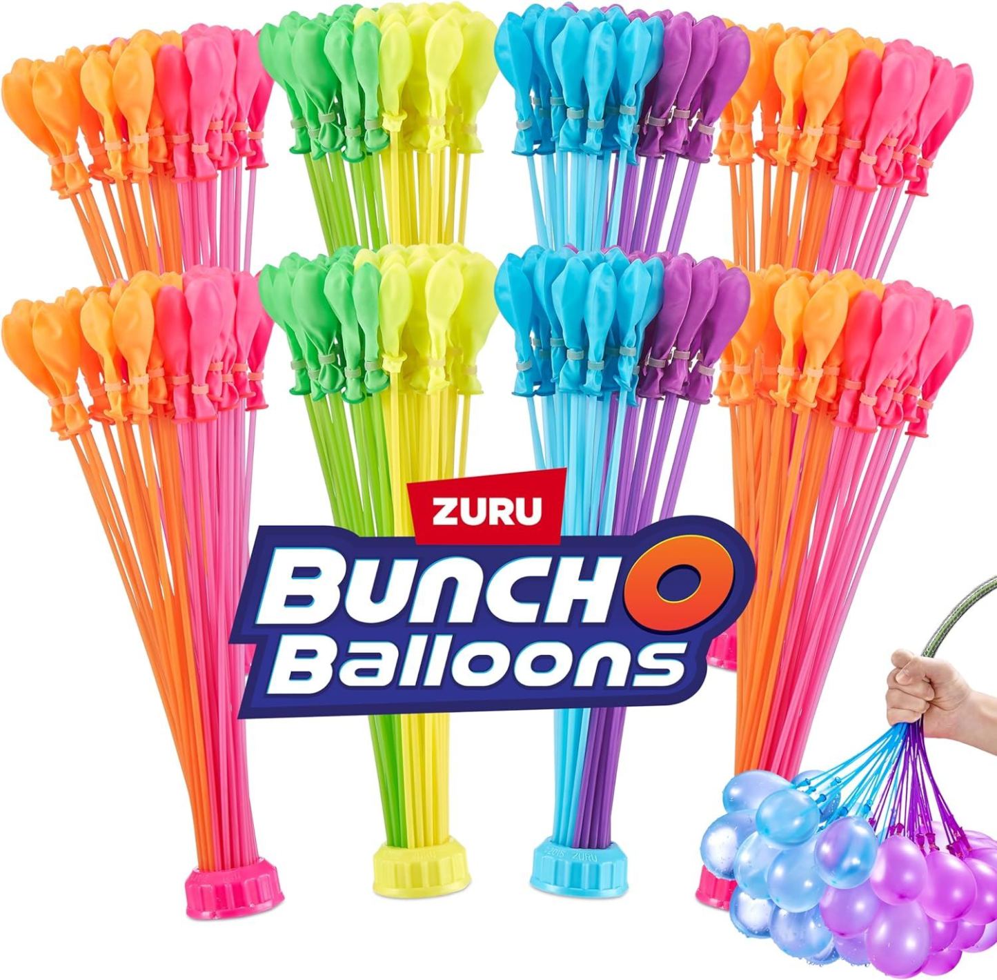 QUICK-FILL: Unleash fun with speed and ease this summer with Bunch O Balloons; fill and tie 100 Water Balloons in 60 Seconds. Simply attach the stem to a hose, fill them big and shake to make hundreds of water balloons in seconds. Yup, it really is that easy NO MORE TYING: Bunch O Balloons patented O-ring technology means there is no tying necessary. These innovative water balloons self-seal, leaving you more time to play Fill your water balloon battles with a spark of color with the brightest, most vibrant water balloons ever Tropical Splash Bunch O Balloons NEW TROPICAL PARTY COLORS: Unleash a tropical summer with Bunch O Balloons Tropical Party Water Balloons Each stem is coordinated with the brilliant color of the water balloon, for maximum vibrancy in your next water battle Our all new tropical colors bring the perfect summer aesthetic for a pop of fun, fill them up, watch them fly and splash into a bright summer SUSTAINABILITY: Bunch O Balloons stems and caps are now made from certified and traceable, recycled re-usable plastic. The balloon pieces are made from �natural rubber�, a material derived from plants Join us in unleashing a more sustainable summer