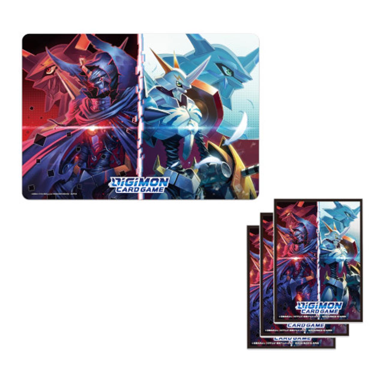 The perfect way to get started with a game of Digimon ??protect your cards in storage and during gameplay with this set of Sleeves and a Game Playmat. 60 Card sleeves and Playmat with an exclusive design sure to satisfy DIGIMON collectors and fans.
