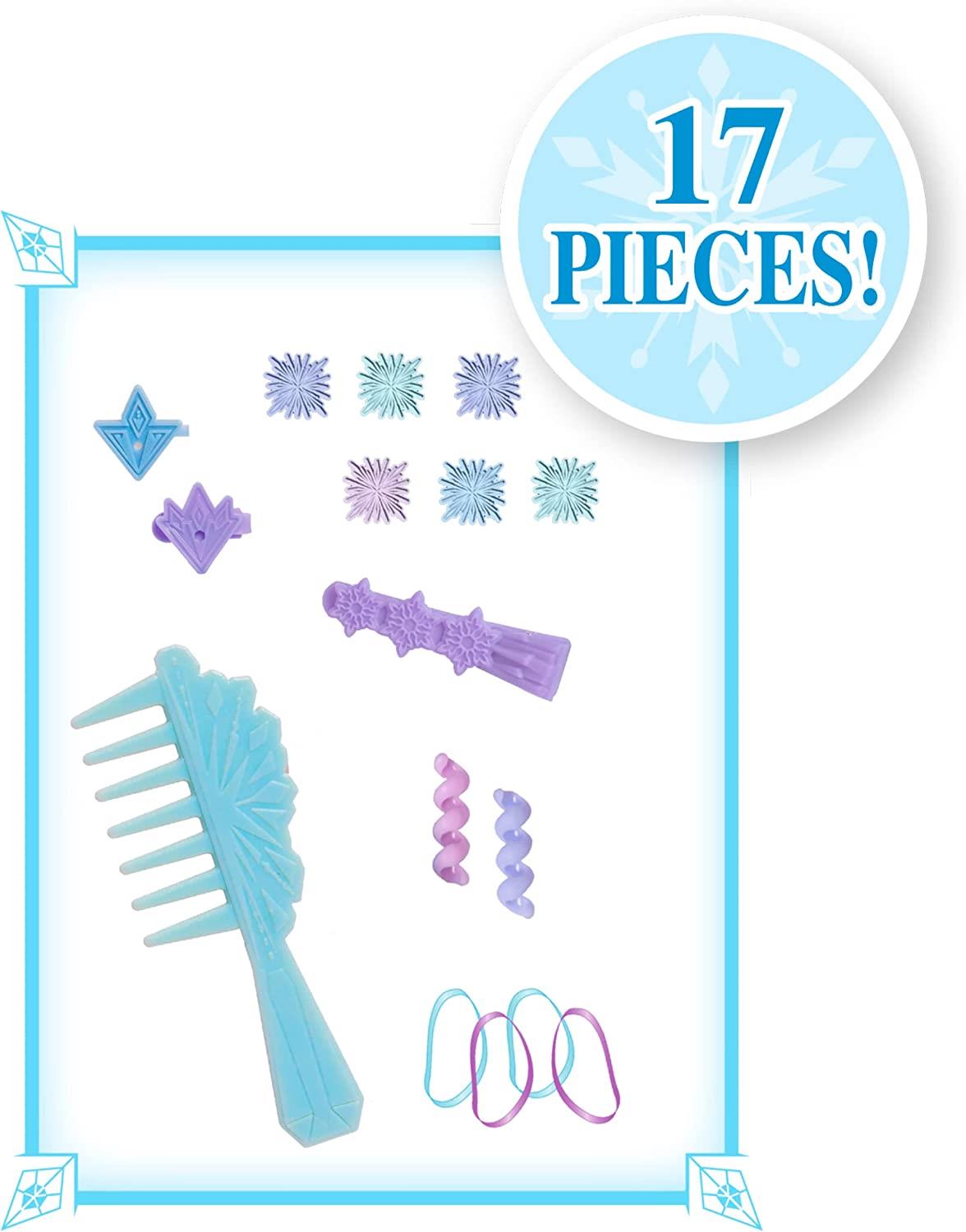 The Disney’s Frozen 2 Elsa Styling Head holds endless hair play possibilities! Elsa features beautiful, shiny blonde hair that is perfect for brushing and styling. The Elsa styling head comes with 13 fun, wear and share accessories, including one hair comb, three hair barrettes, two snowflake claw clips, two hair spirals, four hair elastics, and one large hair clip. Kids can use Elsa's brush to brush her hair and create lots of fun hair styles! Your little one will love using the adorable hair clips to style and decorate Elsa's shiny, flowing locks.