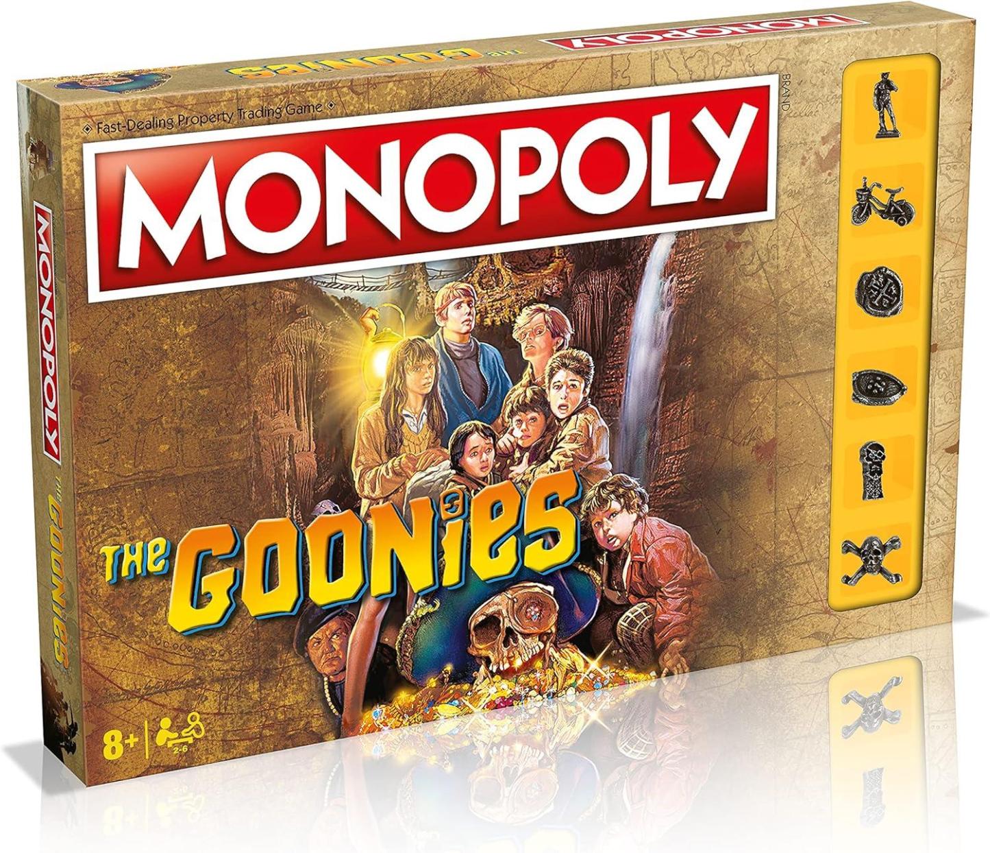 Join Mikey, Brand, Andy, Mouth, Data, Chunk and Sloth in this adventurous twist on the fast-dealing property trading game. Go on a swash-buckling adventure to find One-Eyed Willy�s rich stuff as you visit iconic locations in and under Astoria, Oregon. Based on the popular �80s movie, join the Goonies as they navigate hazardous booby traps, outsmart the Fratellis, and save the Goondocks in this custom edition of MONOPOLY.