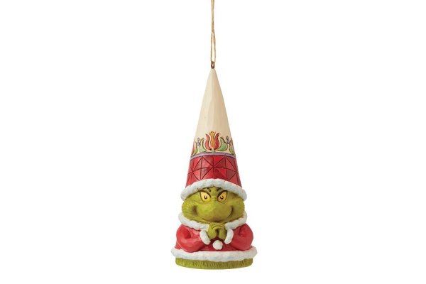 Wearing his infamous grin, The Grinch shrinks several sizes for this lovable gnome hanging ornament by Jim Shore. The Grinch with his hands clenched shows his eagerness to sneak onto your Christmas Tree this season.