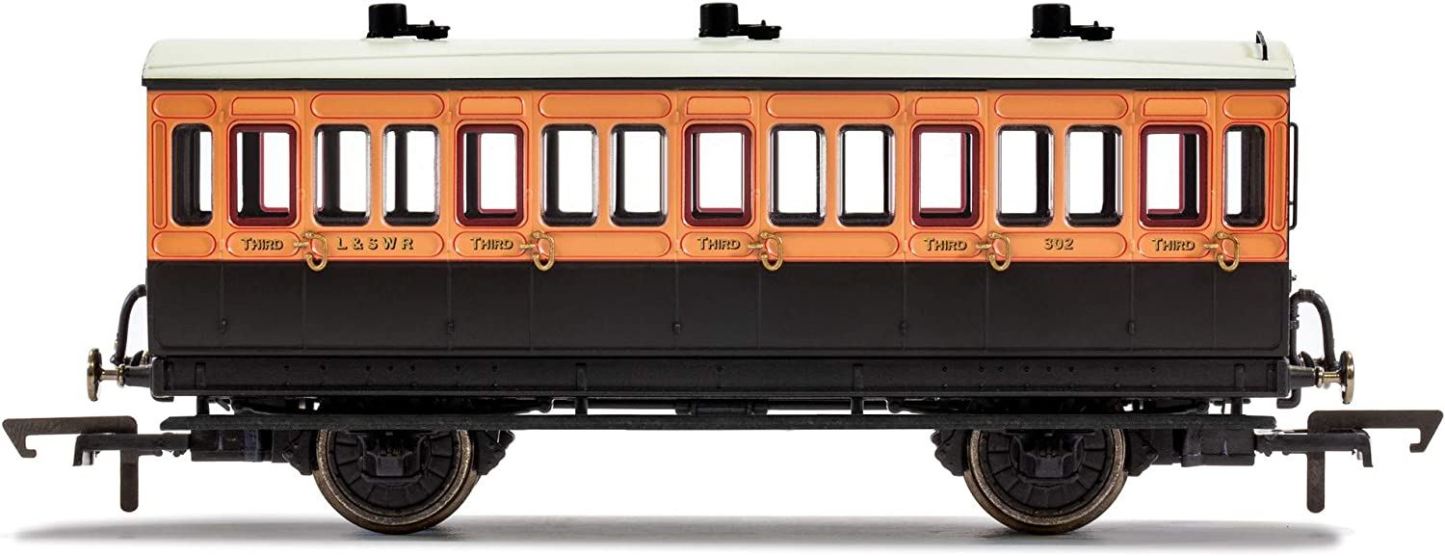 Hornby LSWR, 4 Wheel Coach, 3rd Class, Fitted Lights, 302 - Era 2
