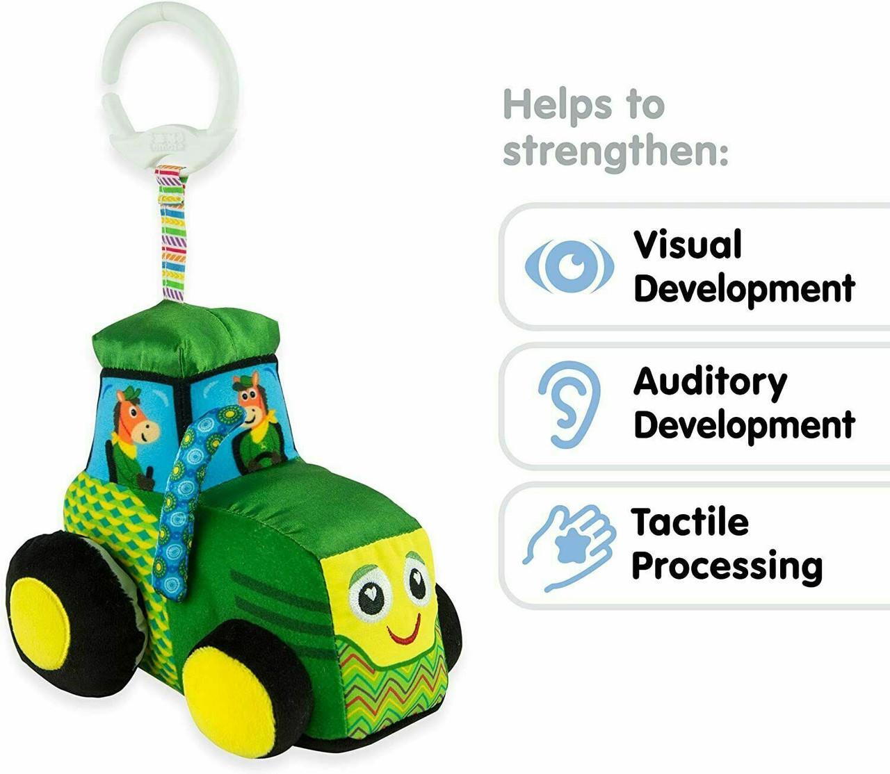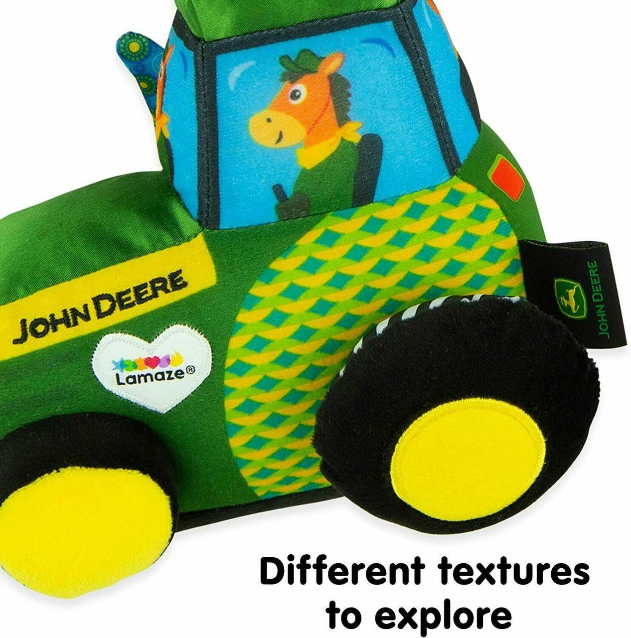 Baby's first John Deere tractor is full of developmental features. Explore the multiple textures and turn the tractor wheel as baby works on fine motor development.