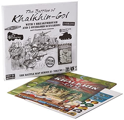 The first installment in our second series of Memoir ’44 Battle Maps offers a campaign of 6 standard scenarios that can be enhanced with the two pre-printed Breakthrough battles provided in this expansion: The Battles of Khalkhin-Gol.   The Battles of Khalkhin-Gol is a series of battles fought along the Halha River (Khalkhin-Gol), on the Soviet-Japanese border, at the very beginning of World War II. The Japanese Sixth Army was facing the Soviet 57th Special Corps, including Mongolian cavalry. At first, the battles were only short skirmishes, but it soon escalated into open war. The whole campaign lasted 5 months and ended with a Soviet victory.   The six standard scenarios of this expansion can be played separately or as a campaign, with each scenario outcome impacting the following one. The pre-printed Breakthrough scenarios, Bain Tsagan Heights and Tightening the Noose, can be played in the campaign as well as one of the two Overlord scenarios, Encirclement at Khalkhin-Gol.   The second Overlord scenario, Cape Torokina Landings, highlights the fierce battle for Cape Torokina between US Marines and Japanese forces that took place years later – therefore it is not part of the campaign.   This expansion also includes 6 Soviet BA-10 Armored Cars and 6 Japanese Type 97 Te-Ke tankettes that players will find useful for many of the scenarios included.   The Battles of Khalkhin-Gol is designed for 2 to 8 players. Each oversized map is ready-to-play with all terrain, obstacles, and unit positions pre-printed so players can simply add the figures and play. The various scenarios of the expansion require one copy of Memoir ’44 (two for the Overlord scenarios), as well as the Terrain Pack, Eastern Front and Pacific Theater expansions. The Equipment Pack and Winter Wars expansions are also recommended.