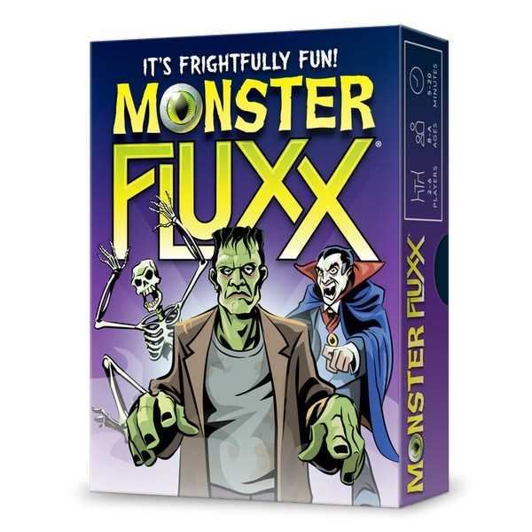 Let the monster mash begin! Classic monster movies and TV shows are the theme in this basic Fluxx deck. Despite the prominent monster presence, this deck is Creeper-free. Designed to introduce new players to the Fluxx system, it has just the four main card types and comes in a 2-part style box. Perfect for Halloween parties!