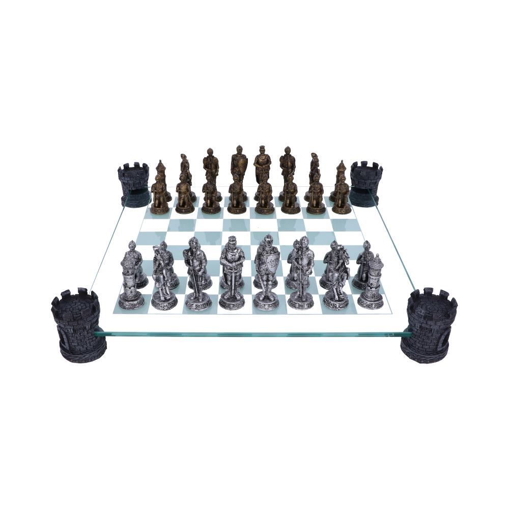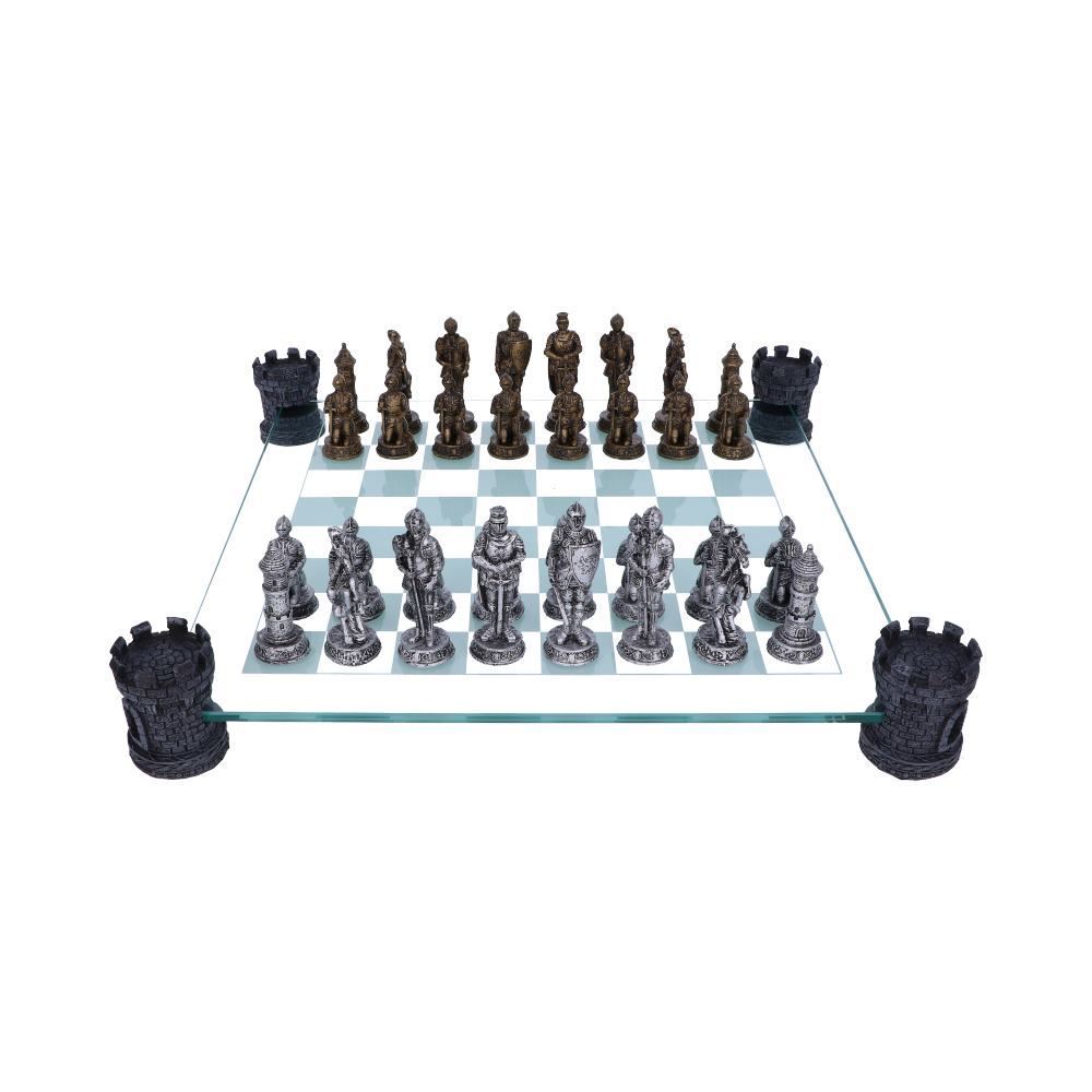 Nemesis Now Raised Medieval Knight Chess Set With Corner Towers 43cm