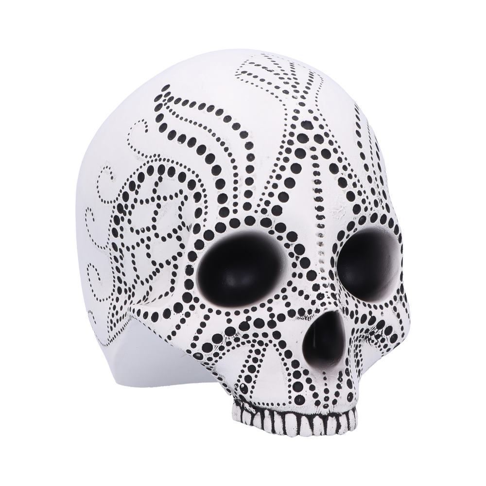 This Pointilist white skull is decorated with various sized black spots creating a pattern over the face of the skull. Its hollow black eyes and nose will send shivers down your spine. Cast in the finest resin before being expertly hand-painted, this Pointlisit Skull is perfect for any gothic space.