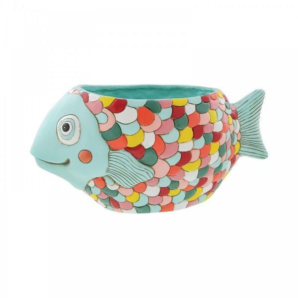 This SUPER Rainbow FIsh planter is so colourful & fun we can hardly stand it. It's a fish lovers dream. If you're looking to add colour and whimsy to your home, this hand paintedl plant container surely does the trick. Style with our Teal Fish Planter to make a real underwater statement. Exclusively designed by Michelle Allen for Enesco.