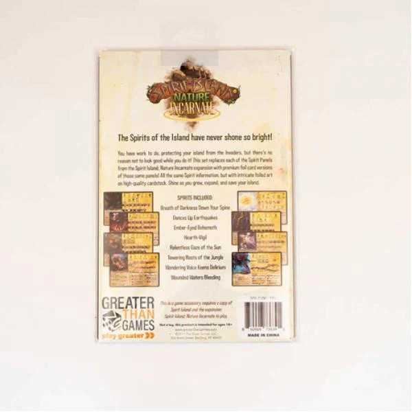 You have work to do, protecting your island from Invaders, but there�s no reason not to look good while you do it! This set of Spirit Panels replaces each of the Spirit Panels from the board game Spirit Island: Nature Incarnate expansion with premium foil card versions of those same panels!