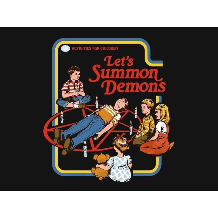 From the mind of Steven Rhodes, a graphic artist and illustrator best known for his offbeat reimagining of children�s activity books from the �70s and �80s, Let�s Summon Demons immerses you in these hilariously dark retro worlds.