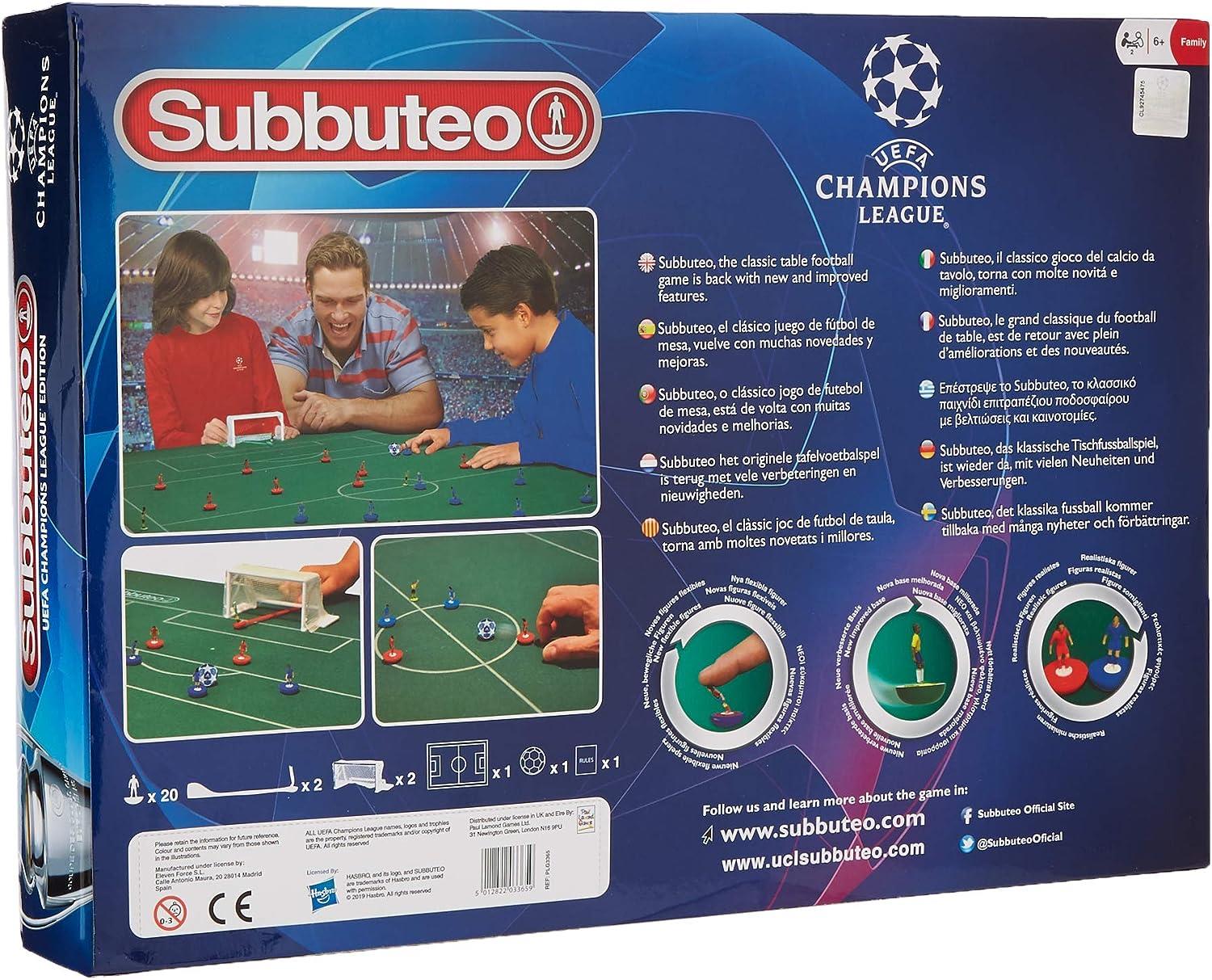 All new official edition Subbuteo UEFA Champions League game with exceptional attention to detail The Official Subbuteo Game includes everything needed to create the perfect match Includes 2 goalkeepers, 20 players, a pitch, 2 goals, a Subbuteo UEFA ball and rules The new players are stronger, with far greater flexibility and exceptional detail including different colour boots and hairstyles From 8 to 80, fans of all ages love the new re-energised Subbuteo range