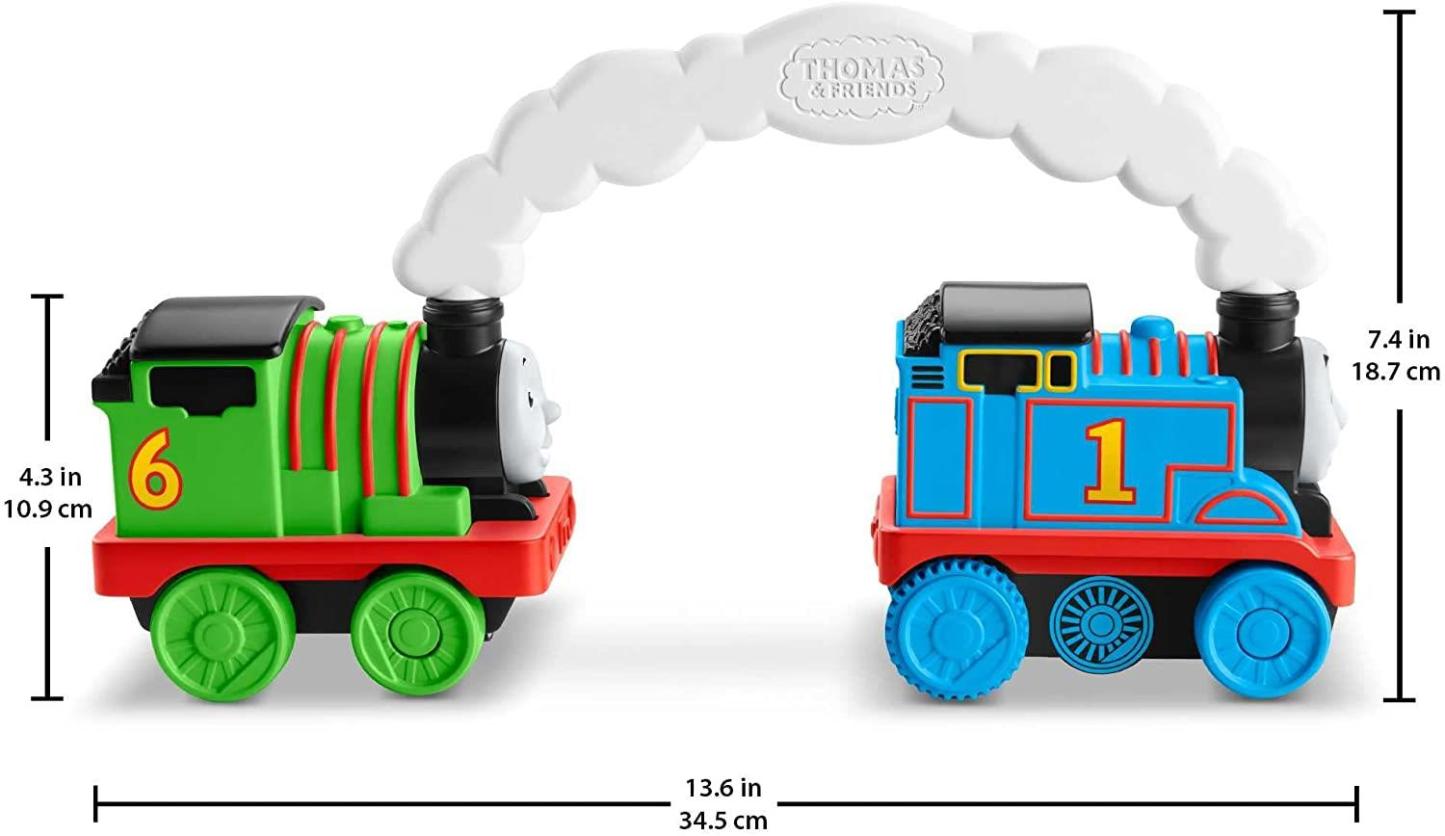 Little engineers can zoom, race and chase all over Sodor and beyond with the Thomas& Friends™ Race & Chase™ R/C from Fisher-Price®. The large, remote-controlled Thomas and Percy train engines are linked together with a steam cloud carrying handle and feature realistic train sounds and character phrases from the show! Kids control all the exciting racing action with the toddler-friendly remote. Get ready, Thomas & Percy. Let’s go! Requires 3x AAA & 4x AA betteries (not included)