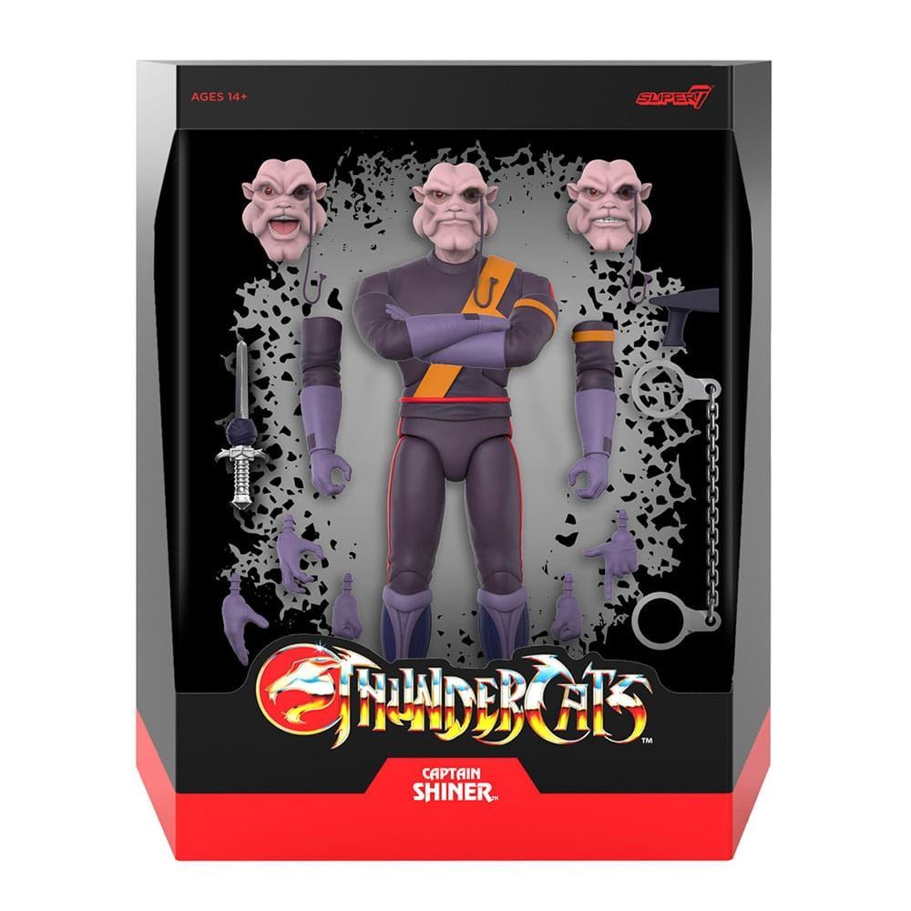 Captain Shiner is a mercenary often hired by Mumm-Ra, but he did help the ThunderCats escape from a black hole that one time! This 7" scale ThunderCats ULTIMATES! Captain Shiner figure features multiple interchangeable heads and hands, a pair of crossed arms, the Sword of Omens, his blaster, and real-chain shackles. Add this made-to-order Captain Shriner ULTIMATES! Figure to your ThunderCats collection and the mercenary will be loyal to your cause!