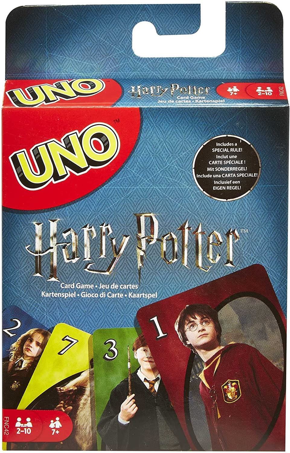 The iconic characters give this deck a unique look that fans and collectors will love, recalling the charm and magical adventures at Hogwarts. Perfect for big or small gatherings of 2 to 10 players ages 7 years and older. ?The 112-card deck has all the usual number cards and action cards, but also includes a special Sorting Hat wild card! When played, another player is chosen and must keep drawing cards until they find a Gryffindor card! ?Game play is like the classic UNO card game -- matching colors and numbers and, for this edition, wizards! Whether from Gryffindor or Slytherin, when a player has one card left, they must yell "UNO!"