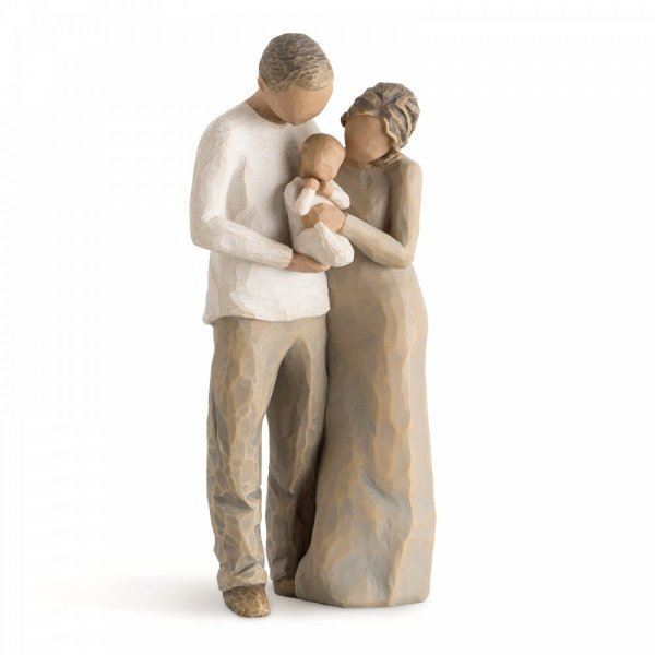Willow Tree is an intimate line of figurative sculptures representing sentiments of love, closeness, healing, courage, hope...all the emotions we encounter in life. "Bringing a new baby home redefines a couple. They see themselves now as parents - with their own family. We are Three represents the incredible feelings of belonging and love for this new little person..." - Susan Lordi. The item is made in cast stone and hand-painted with lead-free paint. Supplied in a branded gift box and a gift tag with sentiment 'It used to be just you and me, Now we are three - a family'. Not a toy or children's product. Intended for adults only.