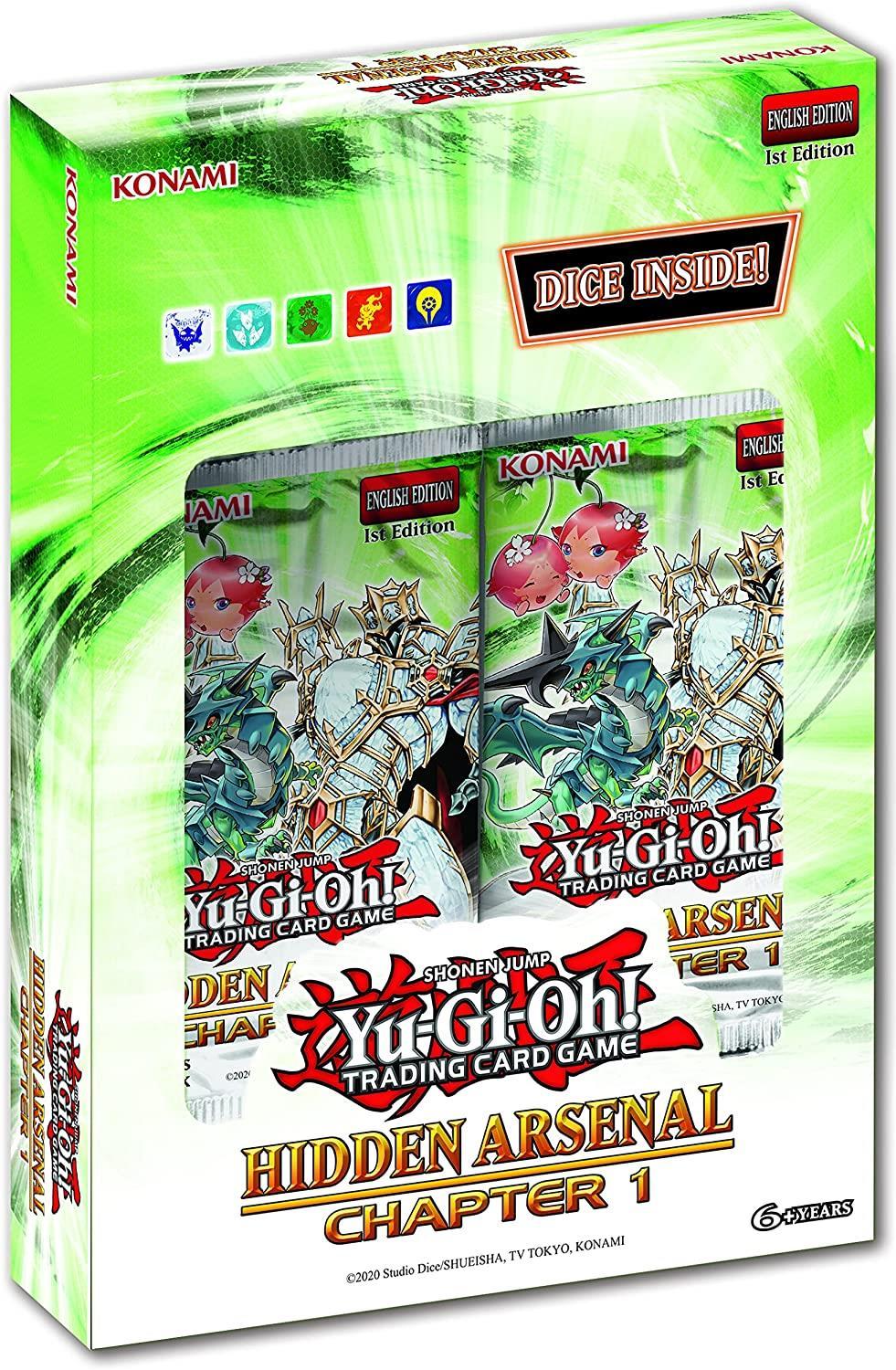 Each Hidden Arsenal: Chapter 1 box will contain one of several special collectible dice. As a special bonus, Duelists can also learn the legends of the Hidden Arsenal world! Each box will come with an insert detailing part of the Hidden Arsenal story, officially available in English for the first time!